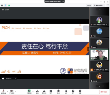 PICH现代服务学院直属党支部副书记马丹飞以《踔厉奋发、笃行不怠,践行育人的初心与使命》主题,从疫情防控工作、学生思政工作、宿舍管理工作、班级建设工作四个方面,分享了本学期紧紧依靠学院师生,围绕学院工作,以党建为引领,以学风建设为主线,提高人才培养质量。坚持把立德树人作为中心环节,坚持“一个目标、两维协同、三段管理、四元合一、五育并举”的育人模式,踔厉奋发、笃行不怠,深刻践行育人的初心与使命。