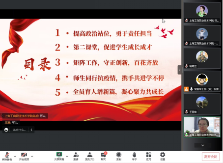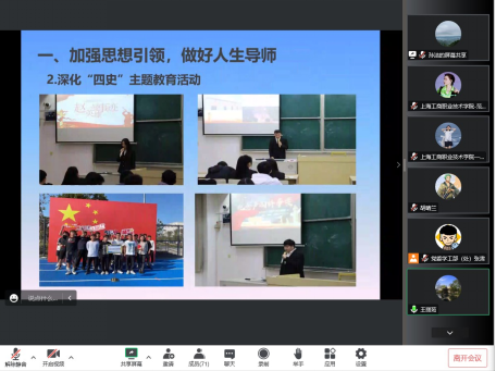 汽车工程系直属党支部书记丁敏以《喜迎党的二十大,感恩路上新奉献》为题,从借喜迎党的二十大东风,助推大学生思想铸魂育人、开展“感恩奉献”百日活动,提升教育文化育人环境、拓展“第二课堂”模式,发掘学生教育体验潜能三个方面,分享了本学期开展学生工作的思路和方式方法。丁敏表示,本学期汽车工程系是以学风建设为中心,以践行社会主义核心价值观为主线,以”共抗疫情、爱国力行“、”感恩奉献“等主题教育活动为载体,开展了一系列提升学生思想素质的工作。