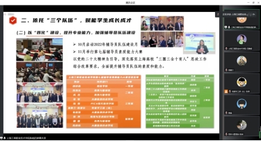 为深入贯彻习近平总书记在全国教育大会和全国高校思想政治工作会议上的重要讲话精神,从学生工作多条线,多维度全面回顾和梳理过去一学期学生教育管理工作成效,加强队伍建设,凝聚育人力量,进一步提升学校学生思想政治教育工作水平,党委学工部(处)于12月23日举办2022-2023学年第一学期学生工作线上总结会。校党委副书记张中美出席会议并讲话,全体学工人员参加会议。