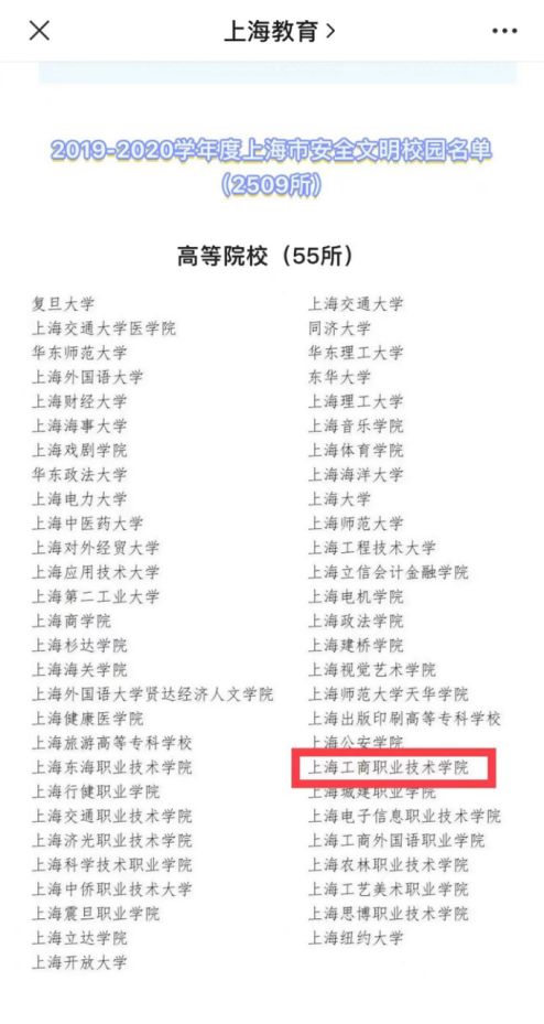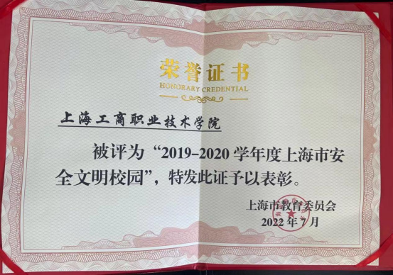 根据《上海市教育委员会关于开展2019-2020学年度上海市安全文明校园申报推荐工作的通知》(沪教委青〔2021〕12号)要求,经过前期自评、验收、公示等程序,学校成功创建2019-2020学年度上海市安全文明校园,被上海市教育委员会授予“上海市安全文明校园”称号。