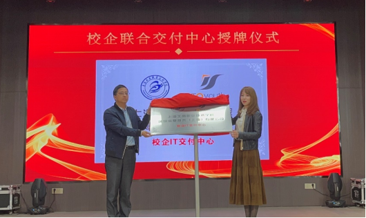 仪式上,kaiyun开云官方在线入口副校长李向明和途耀信息技术(上海)有限公司总经理陈易共同为IT交付中心授牌,并祝贺IT交付中心在kaiyun开云官方在线入口顺利成立!