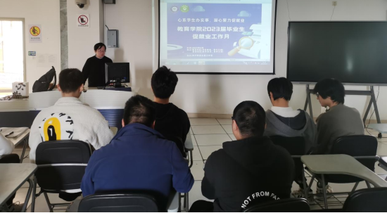 在就业推进会上,许慧芳从当前严峻的就业形势出发,鼓励同学们先就业,后择业。并分别对专升本、自主创业等就业形式的同学进行详细的介绍,提醒同学们在就业实习期中,努力做足准备,拓宽就业渠道。许慧芳还提醒同学们密切关注学校毕业生就业指导中心的官网以及各大招聘网站发布的招聘信息,注意机遇机会的把握。