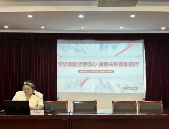 教育学院党总支书记许慧芳以《学思践悟坚定信心 凝聚共识勇毅前行》为题,从深入开展主题教育、加强安全教育管理与干部队伍建设、注重培育先进典型等方面分享教育学院强化新时代大学生使命担当、提高师生能力素质,将立德树人根本任务落到实处的工作收获。