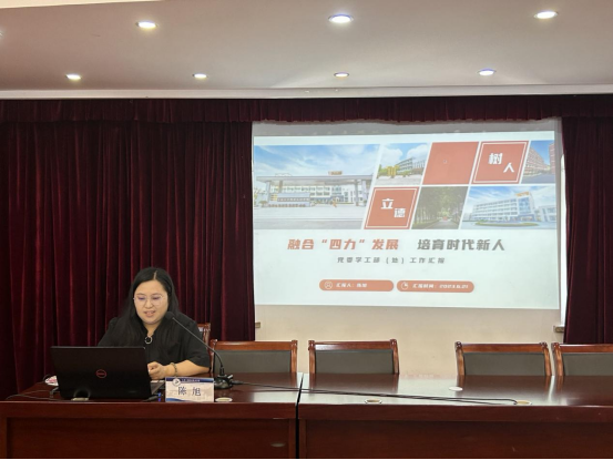 随后,党委学工部(处)部长陈旭以《融合“四力”发展 培育时代新人》为主题,从强化党建引领、凝聚育人“思想”力,注重学生参与、构筑成长“内驱”力,夯实队伍建设、耕耘育人“向心”力,拓宽育人模式、提升服务“品质”力四个方面作了工作汇报。本学期党委学工部(处)紧紧围绕学习宣传贯彻党的二十大精神这条主线,以学风建设为中心,以践行社会主义核心价值观为主线,以“责任敬业”主题教育活动为载体,进一步创新和深化大学生思想引领工作,扎实推进四有人才培养目标,全面提升校园文化育人环境。党委学工部(处)将继续踔厉奋发、勇毅前行,以实际行动为进一步推动学校事业迈上新台阶,实现新跨越而努力。