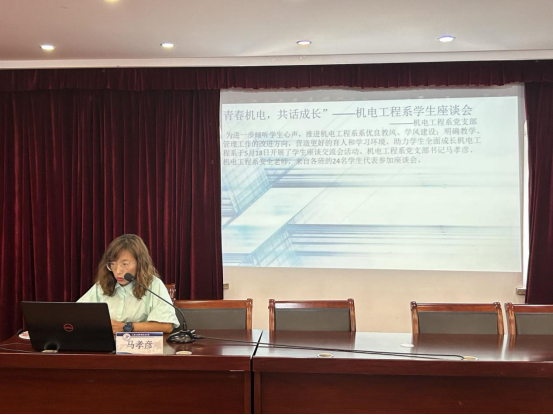 机电工程系直属党支部书记马孝彦以《凝心聚力担使命 奋楫扬帆新征程》为题,从组织开展各类学生教育活动,重视做好毕业生就业、创业工作,做好学生管理工作三个方面分享了机电工程系组织开展的各类学生管理教育活动以及在学生就业、创业工作上取得的工作成效。