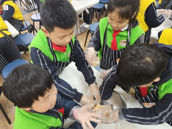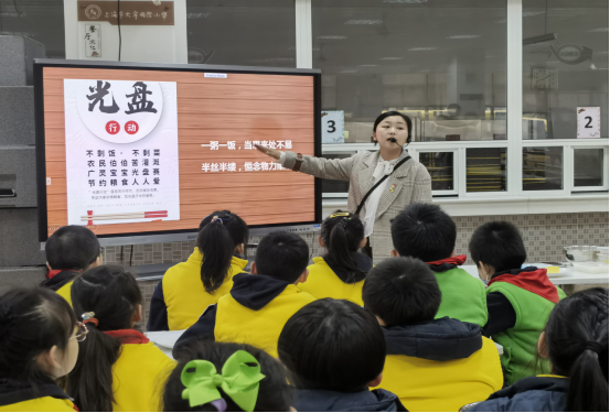 程分理论和实操两大部分。理论部分由王琳、张宁、陆娟三位党员老师授课。老师从“重要的米”“一粒米的前世今生”“剩饭变形”等部分向同学们讲述米饭的营养价值、稻谷的成长过程、剩饭变形等内容。过程中,结合中国历史上的饥荒、红军长征时吃皮带、食树根的经历等思政点,让同学们感悟当下的幸福生活来之不易;其次,通过讲解袁隆平爷爷对中国乃至世界粮食的贡献,让孩子们感受袁爷爷的伟大,领悟科学的力量、榜样的力量;最后,通过现实生活中存在的大量食物浪费现象,巩固“节约为荣、浪费可耻”的观念,让“一粥一饭,当思来之不易;半丝半缕,恒念物力维艰”的古训深入学生内心。