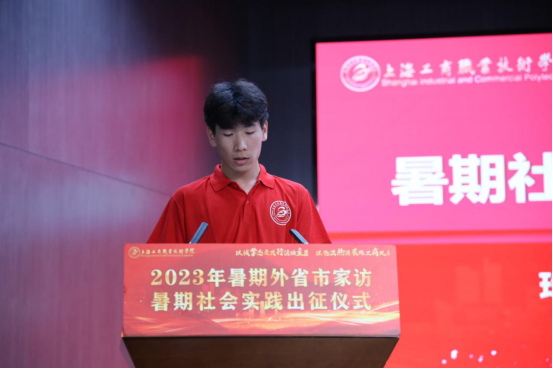 暑期外省市家访教师代表PICH现代服务学院宋招科,暑期社会实践学生代表珠宝与艺术设计学院陈宝胜上台发言。