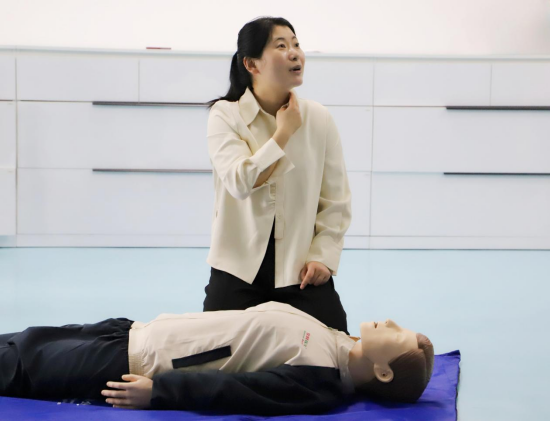 培训学员被分成了四组,我院党员教师结合前期在专业指导下掌握的急救技能,融入到四组学员中协助指导学员完成心肺复苏实操训练,确保每位学员都能独立操作并掌握其注意事项。陆象村学员有说到,按压人体模型的时候,深刻体会到救人是非常专业的事情,一点都不能马虎。华新镇城市运行管理中心学员有提到,心肺复苏急救知识非常有用,回去后也会教给身边的亲朋好友、社区居民,让大家一起学习急救知识,一起守护生命安全。