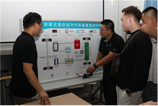 会议还进行交流,明确双方诉求,达成初步合作意向。会后外方企业人员参观实训室,观看师生对新能源汽车维修的现场演示。