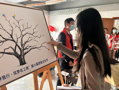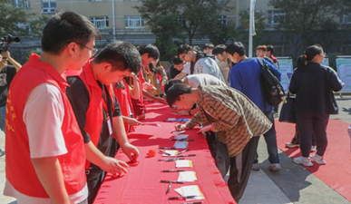 启动仪式结束后,学生纷纷走向“我为国家资助献赞言”活动现场,通过书写自己和资助的故事,彰显国家资助成果。