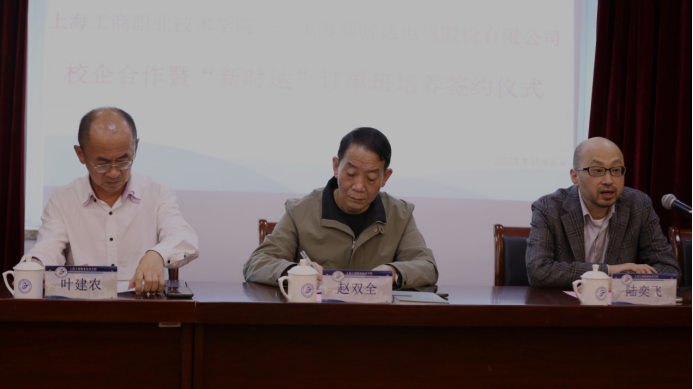 首先由赵双全教授介绍学校基本情况,他向新时达公司给予订单班的大力支持表达了衷心的感谢。他指出,校企合作、产教融合是新时代职业教育的发展方向,订单班的组建,为双方强强合作、资源共享、人才共育赋予了新的内涵。希望双方优化协同育人机制,形成互为供需的“命运共同体”,成为上海市产教融合、校企合作的典范。