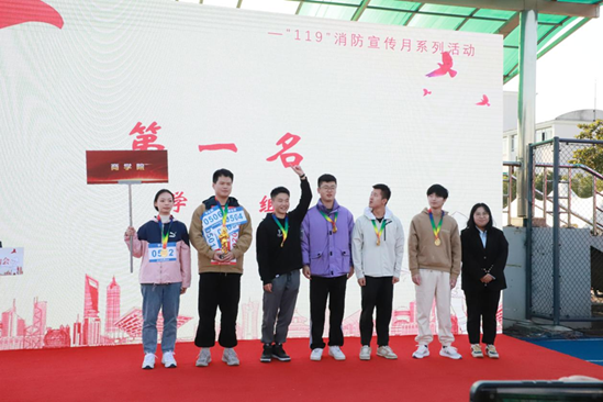 本次活动的第二部分是第三届消防运动会,共有教工组、学生组17支参赛队伍。