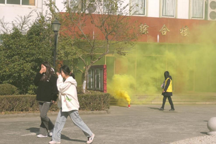 而后进行实景演示,模拟第二教学楼出现火情,应急处置工作随即展开。消防队迅速赶到现场,展开灭火和救援行动。