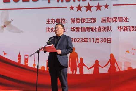 华新镇专职消防队队长李泽善为现场人员详细讲解了灭火器的种类、使用方法和日常维护等相关知识,现场演示了干粉灭火器“一提、二拔、三握、四压”的使用步骤,并对演练活动所准备的模拟火场进行了灭火操作。