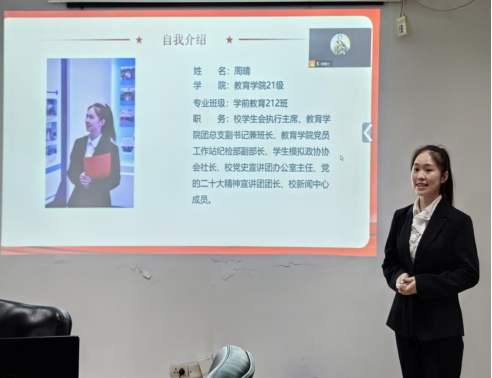 各学院推荐的6名优秀学生按照顺序依次汇报个人事迹及取得的成绩。