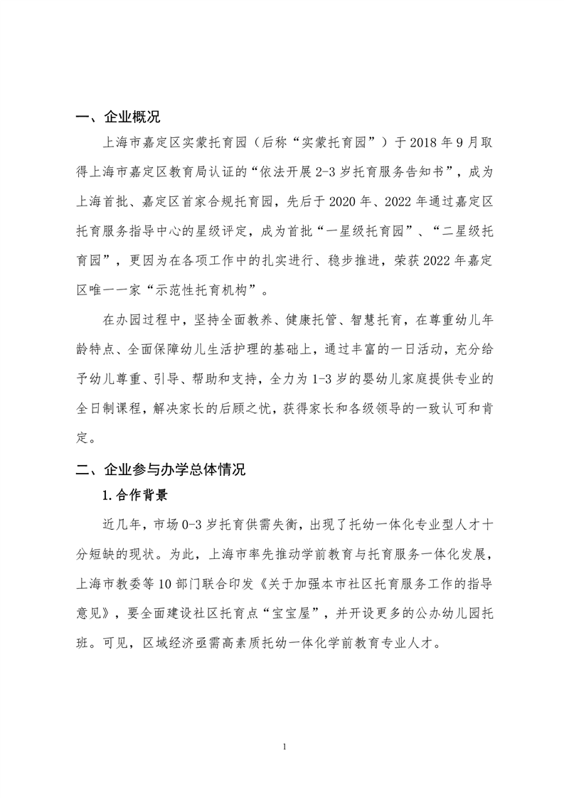 上海市嘉定区实蒙托育园参与高等职业教育人才培养年度报告(2024)