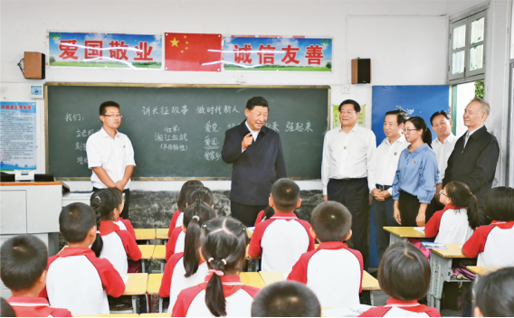 2020年9月16日至18日,中共中央总书记、国家主席、中央军委主席习近平在湖南考察。这是16日下午,习近平在郴州市汝城县文明瑶族乡第一片小学,同正在上思政课的同学们亲切交流。 新华社记者 谢环驰/摄
