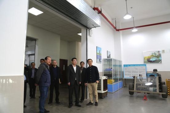 闵辉一行先后调研了移动互联网产教研协同基地、艾达珠宝、生产性实训基地、汽车机电实训基地、大学生活动中心等。