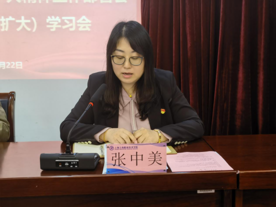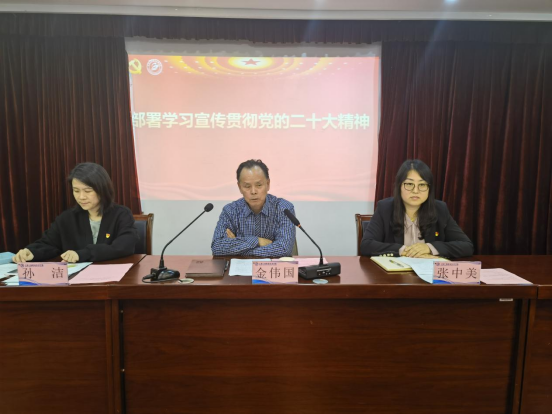 张中美在主持时指出,党的二十大是在全党全国各族人民迈上全面建设社会主义现代化国家新征程,向第二个百年奋斗目标进军的关键时刻召开的一次十分重要的大会,是一次高举旗帜、凝聚力量、团结奋进的大会,在党和国家发展进程中具有极其重要的历史意义。习近平总书记所作的党的二十大报告为新时代新征程党和国家事业发展实现第二个百年奋斗目标指明了前进方向,确立了行动指南。全校上下要进一步凝聚共识,把思想和行动统一到党的二十大精神上,把力量凝聚到党的二十大确定的各项目标任务上来,把党的二十大精神落实到具体行动上、贯彻到点滴工作中,以实际工作成效贯彻落实党的二十大精神。