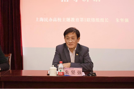 朱坚强作指导讲话。他强调,习近平总书记在学习贯彻习近平新时代中国特色社会主义思想主题教育工作会议上的重要讲话,是加强新时代党的建设的纲领性文献,是开展主题教育的根本遵循,要认真学习领会、深入贯彻落实。就落实主题教育各项任务,朱坚强提出五点要求:一是要提高政治站位。开展好主题教育是重大的政治任务,要深刻领会开展主题教育的重大意义,增强自觉性;准确把握开展主题教育的目标任务,增强实效性;紧密联系民办高校特点和学校实际开展主题教育,增强针对性。要以开展主题教育为契机,进一步梳理学习贯彻习近平总书记考察上海重要讲话精神以及关于教育尤其是职业教育的重要讲话和批示精神,找准学校推进工作的切入点,解决问题的着力点,推动学校高质量发展,培养更多高素质人才。二是牢牢把握总体要求。要严格对照“学思想、强党性、重实践、建新功”主题教育总要求,强化主体责任,细化学习内容,结合学校实际,聚焦主题主线,严格落实主题教育各项工作安排。做到“五个下功夫”:在理论学习上下功夫,学深悟透党的创新理论;在调查研究上下功夫,深入一线了解师生需求;在推动发展上下功夫,以工作成效检验主题教育成果;在检视整改上下功夫,边学边查边改求实效;在建章立制上下功夫,巩固深化主题教育成果。三是要紧盯根本任务。坚持学思用贯通,知信行统一,把习近平新时代中国特色社会主义思想转化为坚定理想、锻炼党性、指导实践和推动工作的强大力量,努力在以学铸魂、以学增智、以学正风、以学促干等方面取得实实在在的成效。四是要聚焦具体目标。要坚持目标导向和问题导向相结合,以具体目标为牵引,以解决问题为抓手,自觉对标对表,及时校准偏差,确保不变形、不走样,有的放矢,精准发力,推动各项任务落地落实。五是要贯通重点措施。把理论学习、调查研究、推动发展、检视整改、建章立制贯通起来,有机融合、一体推进,把学和做结合起来、把查和改贯通起来、把破和立统一起来,边学边查边改,突出重点,抓住关键,统筹兼顾,整体推进,努力把每项工作都扎实做到位。