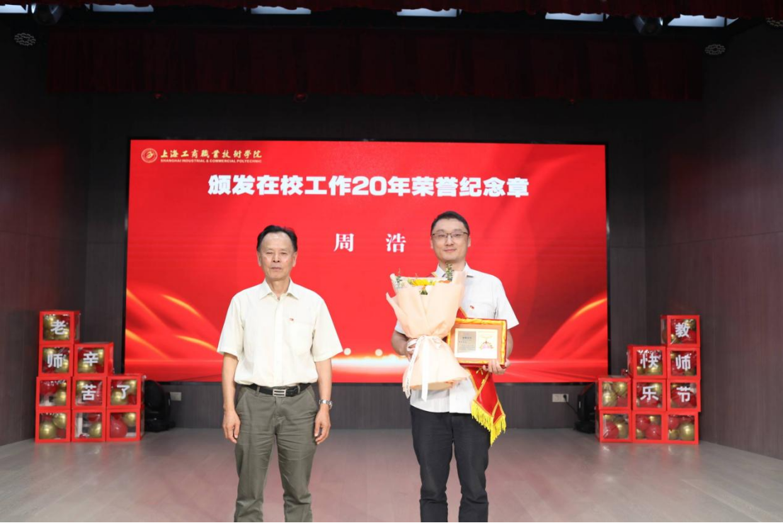 金伟国为在校工作20年教师颁发荣誉纪念章