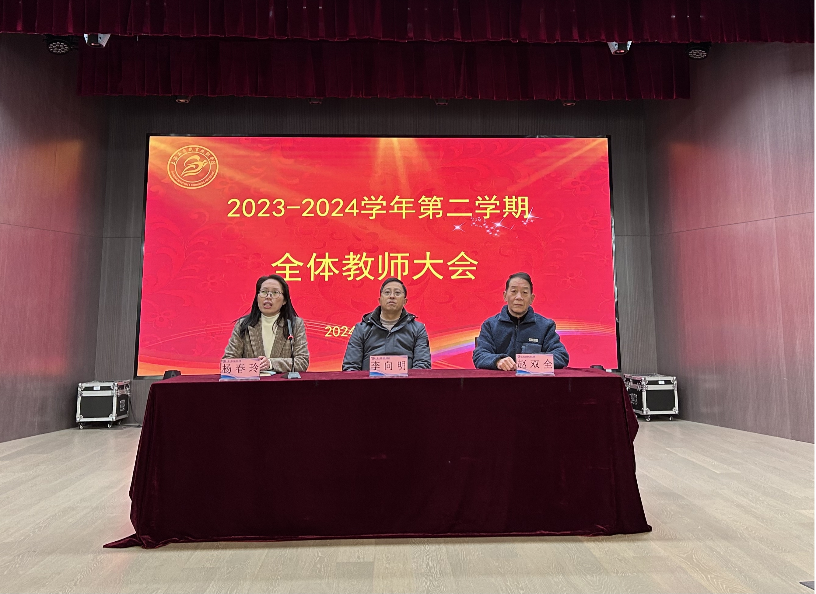 2月23日上午,学校在新报告厅召开2023-2024学年第二学期全体教师大会。副校长李向明和全体专兼任教师、外聘教师和督导等200多人参加会议,会议由教务处副处长杨春玲主持。