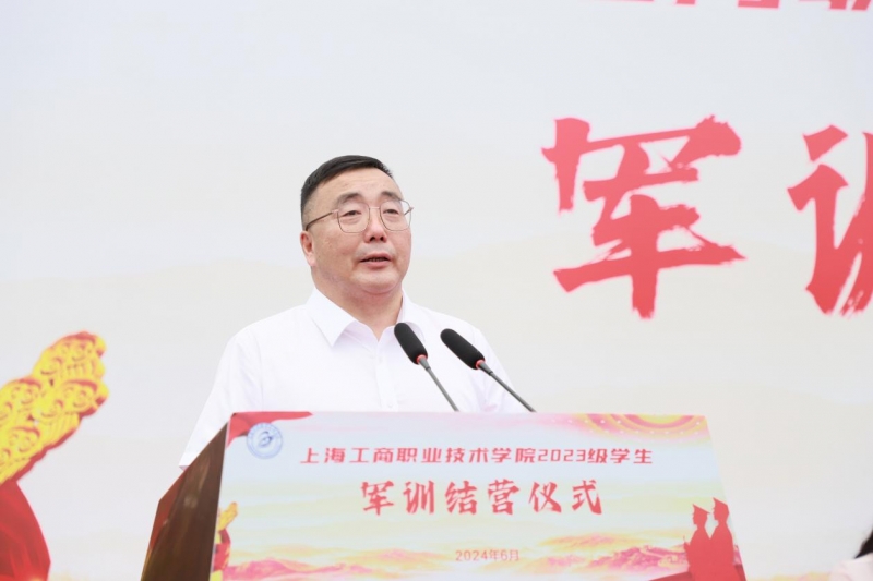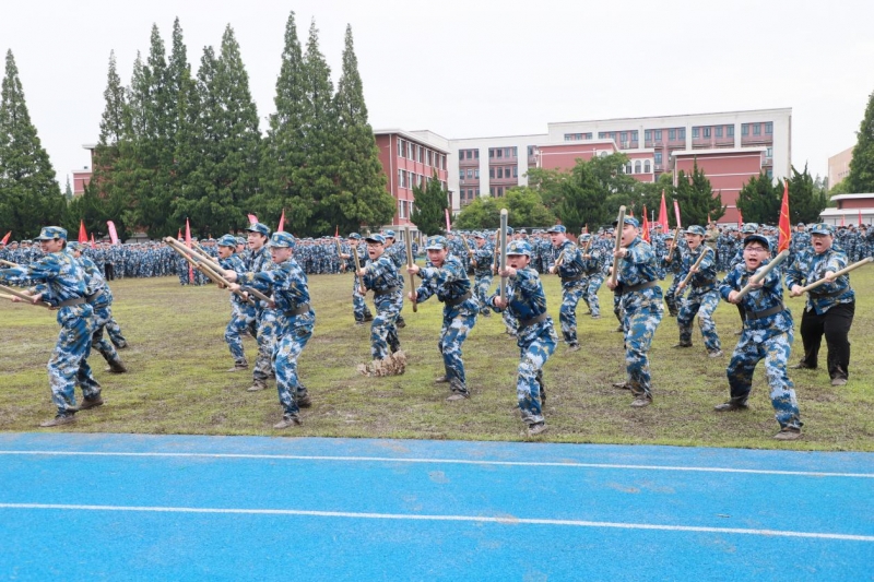 王中强总结讲话。他代表学校向圆满完成军训任务的同学们表示热烈祝贺,向所有带训教官表示衷心感谢,向全体跟训辅导员老师和服务保障人员致以诚挚的问候。他指出,军训是一门特殊的必修课,是一段成长的阶梯,更是一场终生难忘的人生经历。在本次军训中,参训同学们以高度的热情和饱满的精神,积极投入到艰苦紧张的军事科目训练之中,不仅学到了军事知识和技能,增强了国防观念和国家安全意识,坚定了爱国主义信念,培养了集体主义精神,同时也锤炼了艰苦奋斗、吃苦耐劳、勇敢顽强的军人作风。在军训即将结束之际,他向同学们提三点希望:一是志存高远,胸怀家国天下。习近平总书记指出:“高校立身之本在于立德树人”。希望同学们胸怀大局,在“国之大者”中锚定坐标,自觉把人生志向融入中国特色社会主义现代化强国建设中,以技能报国、以匠心逐梦,勇担强国使命。二是发扬拼搏精神,严格要求自己。同学们在训练场上始终以高标准严格要求自己,充分发扬军队的优良传统和作风,培养自己的集体荣誉和奋斗精神。军训结束后,希望同学们明确奋斗的目标,继续发扬拼搏精神,严格要求规范自己,在今后的学习和生活中,再一次取得辉煌的成绩。三是勇担责任使命,贡献青春力量。要学会把小我融入大我,既扫一屋更扫天下,实现破茧成蝶的求学理想,用丰富智慧的精彩人生绘就国家发展的宏伟蓝图,让青春在有责任能担当中散发光辉。