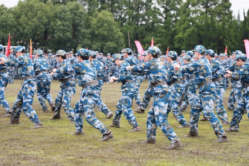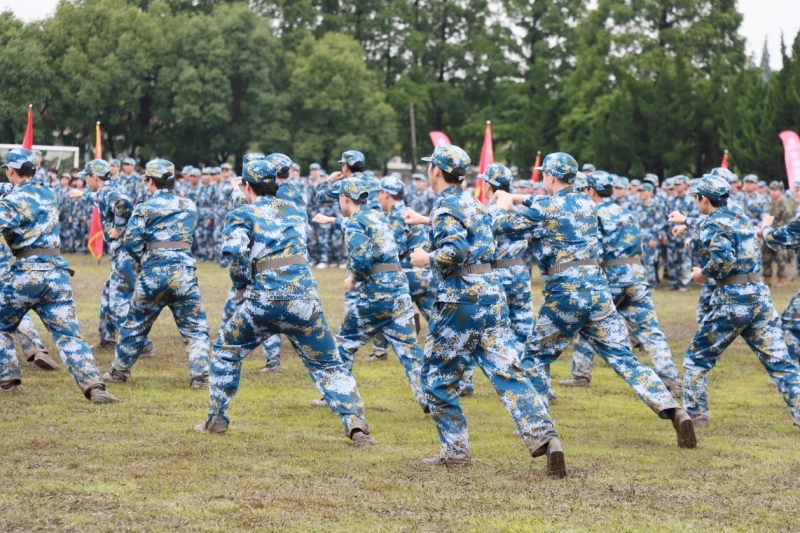 自开训以来,同学们完成了队列动作、内务整理、军体拳、应急棍、擒拿拳、旗语操等训练科目,进行了应急救护科目的学习。军训期间还穿插了文艺表演、集体拉歌等活动。一系列丰富多彩的文体活动,充实了军训的内容,给军训增添了生机和动力,为新生提供了自我展示、相互交流的平台,让2023级学生军训更加饱满、更具活力。激扬青春,舞动迷彩,让我们扬帆起航,乘风破浪,砥砺前行!