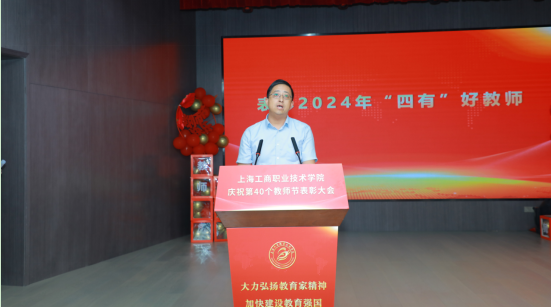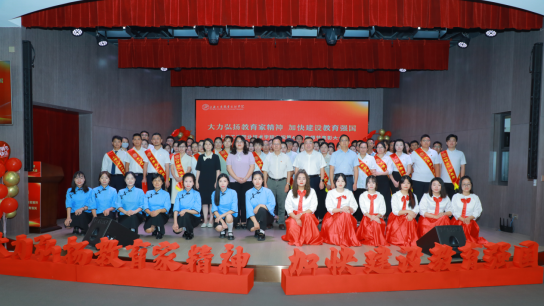 9月6日下午,学校在新报告厅举行“大力弘扬教育家精神,加快建设教育强国”教师节表彰大会,庆祝第40个教师节。校党委书记、理事长金伟国,主持工作副校长王中强,党委副书记、副校长、工会主席张中美,党委委员、副校长李向明,党委副书记、纪委书记孙洁出席会议,全体教职工和学生代表等参加大会!