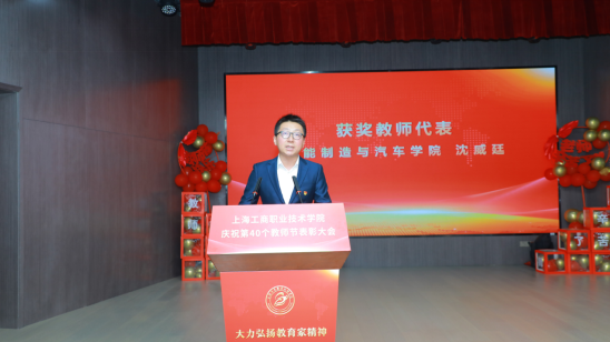 智能制造与汽车学院沈威廷作为获奖教师代表分享了自己作为教师,如何用勤奋和恒心做党和人民满意的好老师的感想。他谈到,爱是教育的灵魂,没有爱就没有教育。热爱学生是教师厚重的职业底色。好老师要用爱培育爱、激发爱、传播爱,通过真情、真心、真诚拉近同学生的距离,滋润学生的心田。