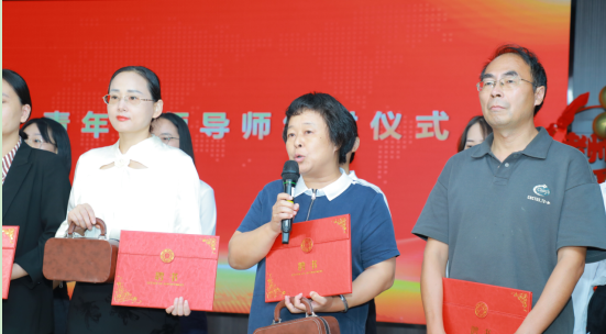 仪式上,导师代表崔文一进行了发言。她说到,来工商十二年,这是第二次站在这个舞台接受同一项任务,心情很激动。虽不同于前面获奖教师满满的殊荣,但却深深感觉到了那份信任、传承和责任,她相信自己,更相信13位导师都和她一样有同样的心愿,做到言传身教、率先垂范,与年轻教师结伴进步,为工商的发展尽心尽力。