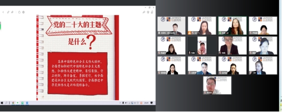伟大变革鼓舞人心,宏伟蓝图催人奋进。习近平总书记在党的二十大报告中强调:“从现在起,中国共产党的中心任务就是团结带领全国各族人民全面建成社会主义现代化强国、实现第二个百年奋斗目标,以中国式现代化全面推进中华民族伟大复兴。”2022年10月20日,PICH现代服务学院全体党员教师及入党积极分子齐聚腾讯会议认真学习领会党的二十大报告精神,支部书记朱燕主持会议并分享报告内容,会议成员分别作交流发言。