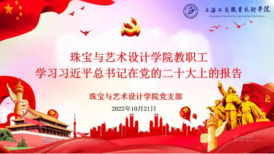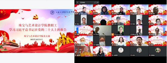 会议由珠宝与艺术设计学院党支部副书记张永辉主持,学院院长徐幼光,学院党支部书记、行政副院长年文韬参和学院全体教职员工参加了本次活动并分享二十大感想