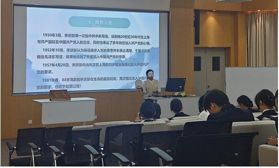 为了让有入党意愿的学生加深对党的认识,坚定入党决心,从党史故事中感悟责任担当,汲取奋进力量,2023年11月2日下午,PICH现代服务学院开展以“党史故事学习——宋庆龄入党的曲折历程”为主题的初级党课专题讲座,王琳老师主讲。